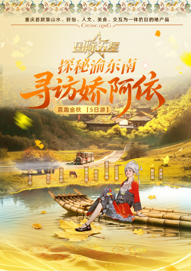 【探秘渝东南】重庆+武隆+彭水 寻访娇阿依 动去动回5日游【收客前请来电询位】(独家定制2+1保姆车,地道美食:重庆老火锅、武陵山珍宴,高山流水长桌宴、竹笼宴,精华景点:武隆天生三桥、仙女山、乌江画廊、龚滩古镇、阿依河、蚩尤九黎城、李子坝、解放碑、洪崖洞、南滨路夜游)