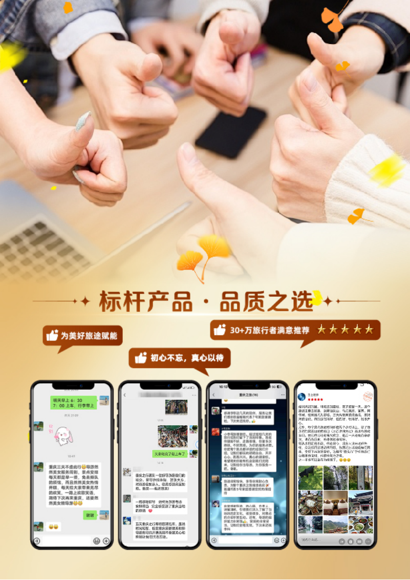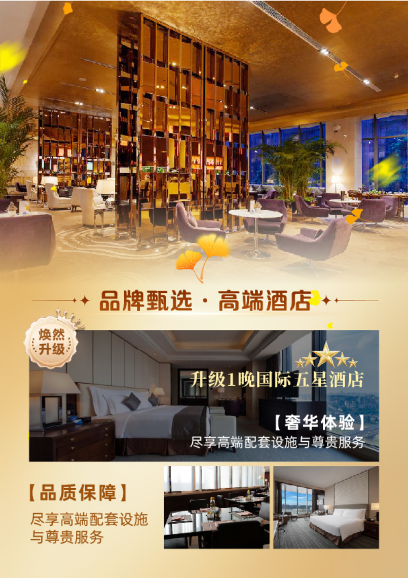 2、住宿:含1晚市区国际五星酒店,1晚市区携程4钻酒店,1晚景区特色客栈,1晚当地准五酒店;酒店均无三人间,也无加床,三人出行需自行补单房差;为倡导绿色环保出行,重庆酒店均不提供一次性洗漱用品,游客需自备;