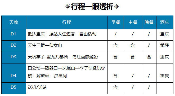 【画隆典金】重庆+武隆动去动回5日游【收客前请来电询位】