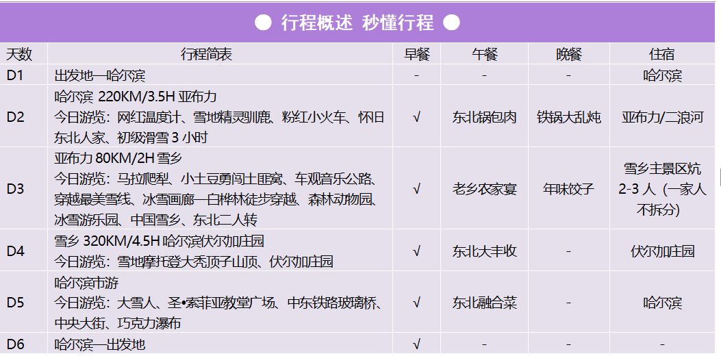 2根据亚布力/雪乡酒店用房情况及天气等不可抗力因素影响,我社有权前后调整行程顺序,以实际情况为准;