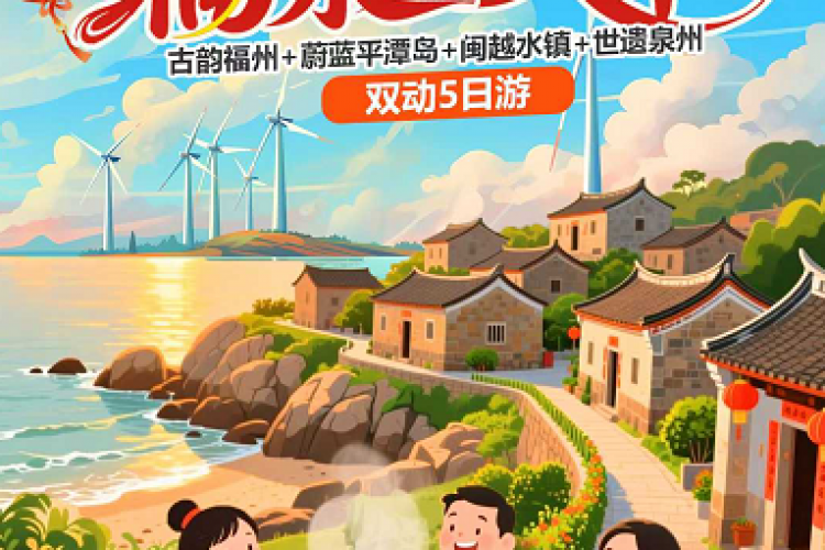 前往网红景点【烟台山公园】,"叠水假山、石雕花廊"有小“鼓浪屿”之称的烟台山历史风貌区。“一座花园,一条路,一丛花,一所房屋,一个车夫,都有诗意。尤其可爱的是晚阳淡淡的时候,礼拜堂里送出一声钟音,绿荫下走过几个张着花纸伞的女郎...”这是叶圣陶1923为烟台山所留下的描述。整个公园分为三个景区:北部的纪念林区,中部的文物古迹区和南部的动物园区。烟台山公园风光秀丽,气候宜人、林木葱郁、四季如春、是福州市内主要风景区之一。瞻仰【吴石故居】隐于寻常巷陌的吴石故居,是福州民国建筑的雅致缩影。青砖小楼带着西式廊柱的精致又藏着中式木窗的细腻,院落里老桂树亭亭如盖,细碎光影落在斑驳的墙面上。屋内陈列着旧物与史料,窗棂外是市井烟火,历史的厚重与生活的鲜活在此交织,静静诉说着往昔故事,角落的青苔与藤蔓更添几分岁月韵味。前往【闽越水镇】一段丰富的文化之旅在此开启,它以福州人文为基础,打造了6个文化体验式展馆…主打旅游演艺推出主秀(寻梦千年闽越)3大演出剧场、全天不间断的近100场旅游演艺、全新开发的水系(二消-游船)还原“百货随潮船入市,万家沽酒户垂帘”的福州百年水乡风貌,游客可身临其镜重温福州水乡的独特韵味…在水镇里自由活动。(根据抵达时间可观看迎五路财神、舞龙舞狮、秧歌舞等表演)晚上:【闽越水镇】自行逛庙会,品尝福建特色小吃。后参加沉浸式大秀《寻梦.千年闽越》演出(不使用不退),闽越水镇“福”文化演艺名片,运用大型建筑投影,水火灯光秀特效等高科技手段,呈现八闽大地的千年文化及海上丝绸之路的繁华历史,让尘封多年的八闽传奇于舞台之上破维重现。