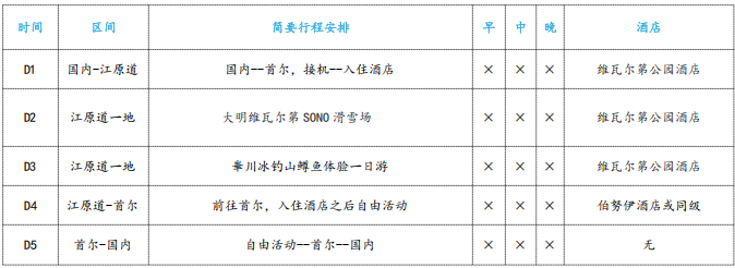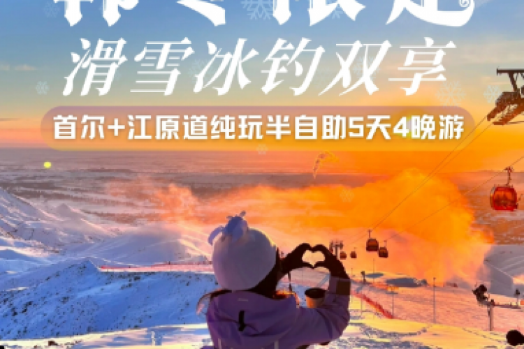 韩国首尔5日4晚跟团游·韩冬限定4-8人精致小团【目的地参团】首尔+江原道滑雪冰钓双享体验之旅-大明维瓦尔第SONO滑雪场-崋川冰钓山鳟鱼体验-指定3晚入住5鉆酒店维瓦尔第公园酒店+1晚首尔市内4鉆酒店