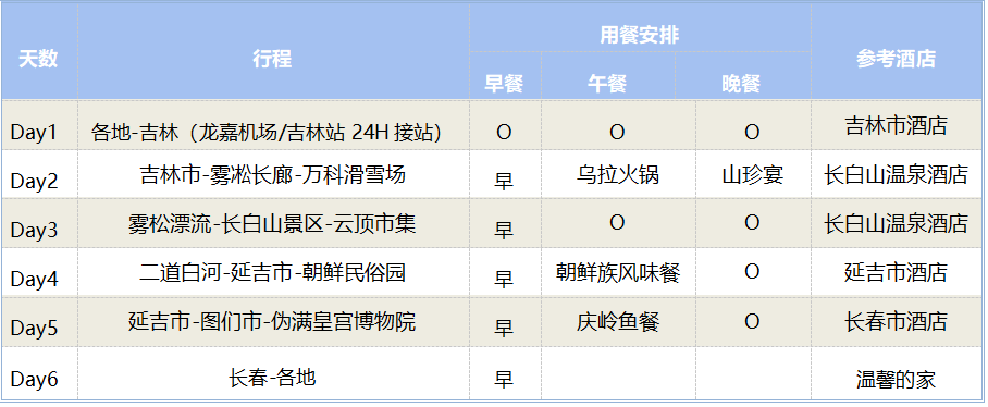 甄选住宿:1晚吉林四钻酒店+2晚长白山温泉酒店+1晚延吉四钻酒店+1晚长春四钻酒店;