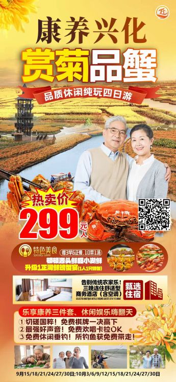 <康养兴化 赏菊品蟹 休闲四日游>千垛菊花景区/李中水上森林公园/金东门老街/郑板桥故居 休闲四日游