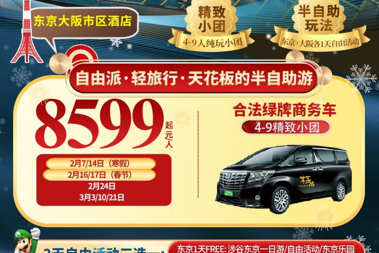 ●住宿升级:8月每周二、六出发东阪班期A团+9-10月每周四出发东阪A团-升级入住2晚大阪心斋桥/难波/道顿崛区域