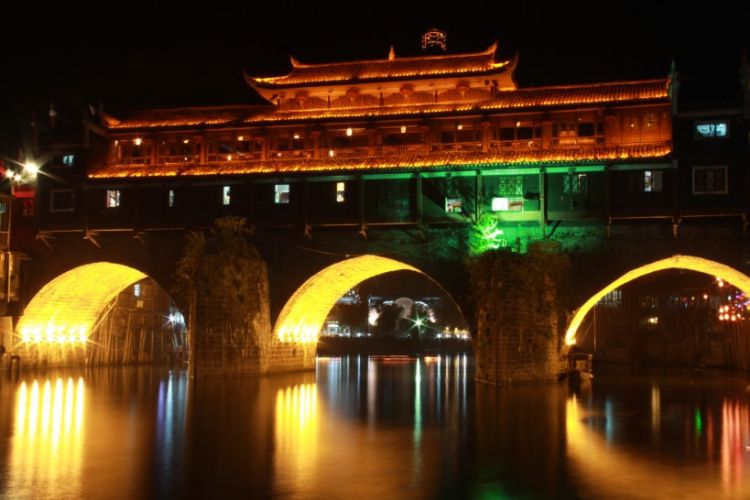 早餐后游览曾被新西兰著名作家路易艾黎称赞为中国最美丽的小城---【凤凰古城】(赠送古城观光游览,不含古城内需另行付费的小景点,自由观光):凤凰也可叫边城,是世界“乡土文学之父”沈从文的故乡,古城内沿沱江两岸漫步,欣赏悠悠沱江水,翩翩吊脚楼,一种远离尘嚣的感觉油然而生,观看苗家姜糖、银饰制作流程等,欣赏沙湾吊角楼及电影《湘西剿匪记》的拍摄原址,那一弯沱江水,一叠翠微峰,一溜石板路,一排吊脚楼,一座风雨桥,一批文化人,不知令多少人梦牵魂绕,游【民俗步行街】:这条古街应证了千年厚重的历史文化沉淀,集休闲,娱乐,购物,民俗于一体,沿街有苗家扎染、蜡染、银饰、挑花、刺绣等多种多样的民间工艺品以及众多风味小吃,参观有代表性的苗族银器传承中心、熊氏蜡染铺、陈家老号姜糖、阿牛血粑鸭、吴花花的扎染铺、王春的“苗家小铺”等众多工艺美食店铺。乘车赴【张家界】,参观、体验“万金一字征名”和号称“世界最高最长”的【世界第一玻璃桥】(包含门票):桥高约400多米,长约370米,宽6米,全部采用99块透明玻璃铺设而成,创造了多项世界之最,这里天蓝,云白,山青,小桥,流水,石径……感受刺激,陶醉神奇,见证奇迹,交相辉映出一个最美花园。欣赏湘西【大型民俗歌舞晚会】:晚会以“非遗的传承•原始的再现”为核心,把隐匿民间艺术呈现于世界,在此让您探寻屈原笔下诡异的楚风遗俗、湘西巫术;后参加•欢乐篝火晚会,土家阿妹现场教学摆手舞,对山歌当一天湘西本地人。
