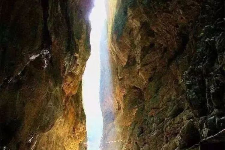 12:30左右游览【一线天】(游览时间1-2小时左右)风洞、螺丝洞,一线天原名灵岩,因沿顶有一裂罅(XIA):就像利斧开一样,相去不满一尺,长约一百多米,从中漏进天光一线,宛若跨空碧红,