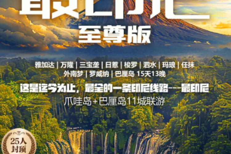最印尼至尊版|(东航)雅加达+万隆+三宝+日惹+梭罗+泗水+玛琅+任抹+外南梦+巴厘岛+罗威纳 15天13晚