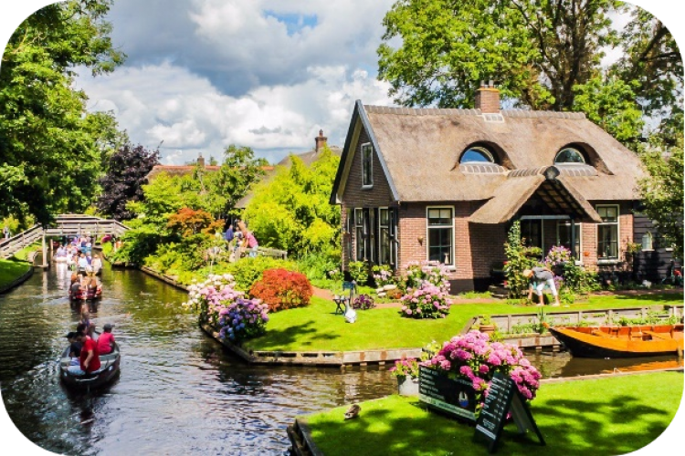 【羊角村】羊角村是一座位于荷兰上艾瑟尔省斯滕韦克兰的村庄,这里被称为“北方的绿色威尼斯“,之所以出名,是因为羊角村以乘船作为主要的交通方式。小镇就像童话里描述的那样,蓝天绿草,涓涓溪流,一派安静祥和的样子,吸引了不少游客前来。