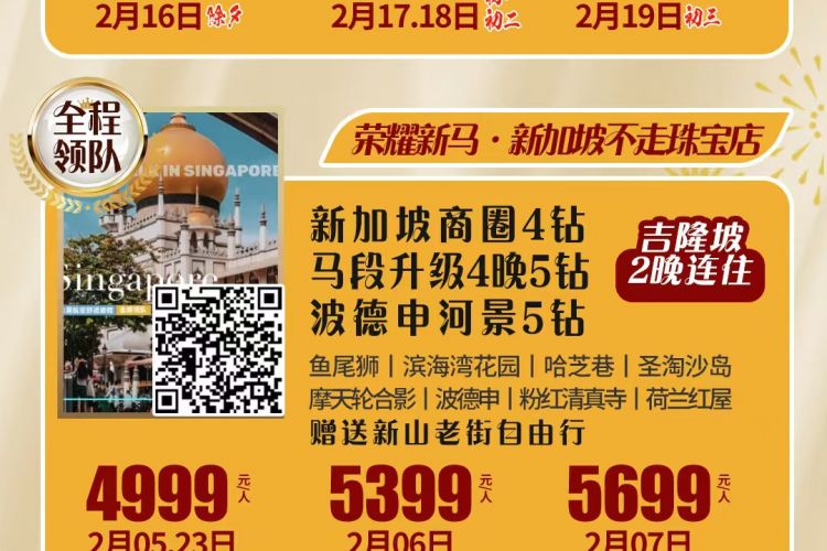 早餐后开始美妙的观光之旅,【鱼尾狮公园】鱼尾狮像坐落于市内新加坡河畔 ,是新加坡的标志和象征
