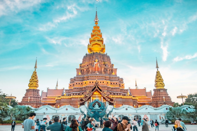 后乘车游览参观西双版纳傣王的皇家寺院——【勐泐大佛寺】(电瓶车 40 元/人,为保证行程统一请客人务必缴纳)(尊享 VIP 通道,不排队零等候)(景区内的商业板块与旅行社无关),佛寺 是在古代傣王朝的皇家寺院“景飘佛寺 ”的原址上修建的,以佛祖释迦牟尼的生平及佛 寺活动为主线,九龙浴佛、景飘大殿、神石、国殿、吉祥大佛等有 500 多座佛寺、200 多座佛塔。而勐泐大佛寺是所有佛寺中最大的,地位也是是至高无上的,是傣家人心目 中的圣地,成为世界南传佛教的文化中心。今日独家资源特别安排:《神石祈福》据贝 叶经记载,这块大石出现在一个雷电交加,风雨大作,大地震动的夜晚,而附近村寨的 居民一直把它当作天降神石祭拜。在第二年,佛祖坐在此石上休憩为四处赶来的百姓讲 经说法。佛祖指着当时澜沧江和流沙河泛滥的坝子,留下预言:将会有一个帕雅(傣王) 管理并繁荣这个地方,佛法将在这里从此光大昌盛……根据时间可观千只孔雀放飞盛 景。参与傣家泼水活动祈福“泼湿一身,幸福终身 ”。