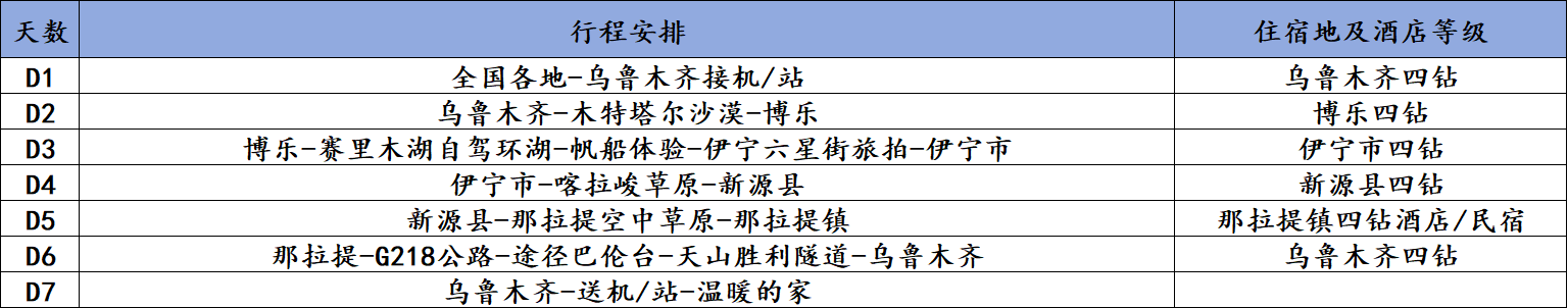 4.如【那拉提-G218-天山胜利隧道】不具备通行条件,备选方案如下:乘客返回伊宁市区后,游客自行购买伊宁-乌鲁木齐火车票返程。我社可协助购买车票,费用需客人自行承担。