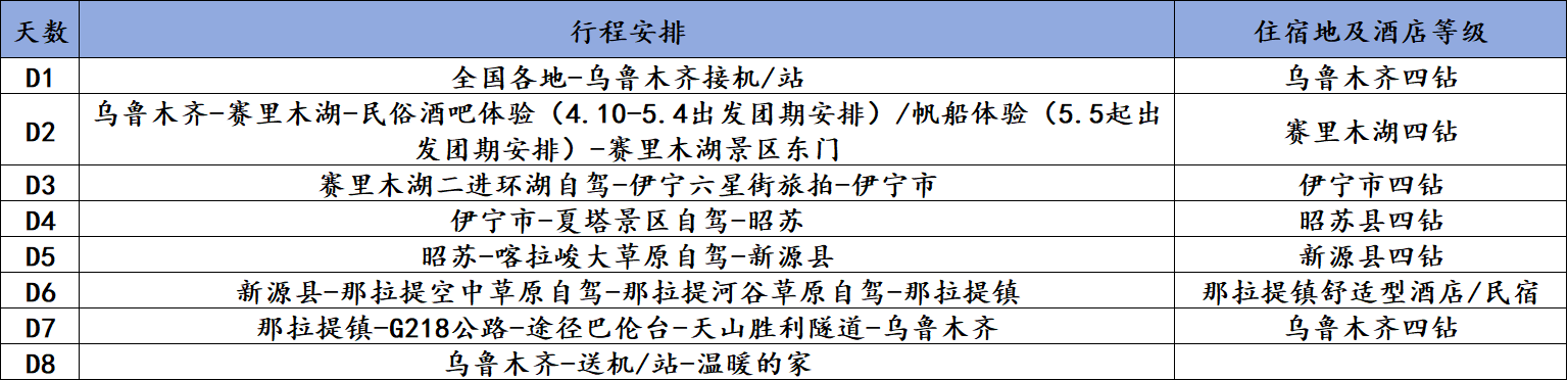 3、如遇夏塔景区闭园,无法参观则调整为:伊宁-昭苏玉湖-昭苏。