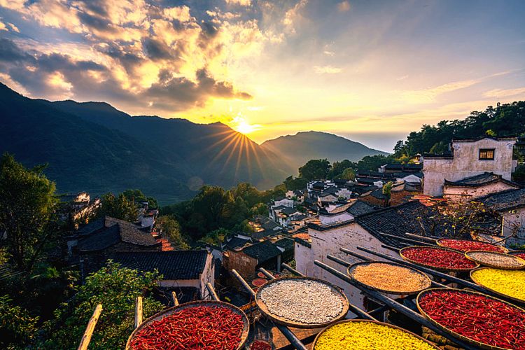 早餐后,乘车赴中国最美的乡村—婺源,约9:20分左右抵篁岭,游览【梯云人家•梦幻田园—篁岭】,(游览约3-4小时,自理往返缆车或景交送门票):篁岭属典型山居村落,民居围绕水口呈扇形梯状错落排布。周边千棵古树环抱,万亩梯田簇拥,村落“天街九巷”似玉带将精典古建串接,徽式商铺林立,前店后坊,一幅流动的缩写版“清明上河图”。篁岭景观特色:【索道空中揽胜】 【村落天街访古】 【梯田花海寻芳】 【乡风民俗拾趣】,篁岭有婺源特有的“晒秋”农俗特色景观,数十栋古老徽派民居在百米落差的岭谷错落排布,家家凿窗采光,户户支架晒物。村民们用眺窗为画板,支架为画笔,晒匾为调色盘,春晒水笋、蕨菜;秋晒红辣椒、稻谷黄豆…就这样成就了一幅幅民俗风情杰作,一年四季延绵有序。 篁岭因“晒秋”而闻名遐迩,并成为摄影爱好者的乐园。下午行程结束后,乘车返屯溪送至酒店。晚餐后,休息。
