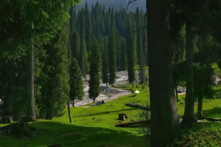 游览【库尔德宁】库尔德宁位于巩留县东部山区,距县城88公里。是南北走向的山间阔谷,长约14公里宽处达1公里。谷底平均海拔1500米。独特之处是,通常的山沟多顺山势而下,唯独这条阔谷却与雪山平行。库尔德宁即是横沟之意。1984年,这里被辟为自治区雪岭云杉自然保护区。2000年4月又被确定为西天山国家级自然保护区。保护区内有1000余种高等植物,146种陆栖脊物和196种昆虫。主要景观有喀班巴依峰远眺、提克喀拉尕依林海、库尔德宁草原景色等。