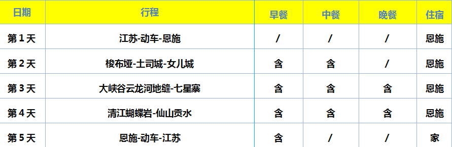 经典往事——恩施一地 舒适纯玩 双动5日游恩施大峡谷全景、七星寨清江、梭布垭、女儿城、土司城、双动五日游