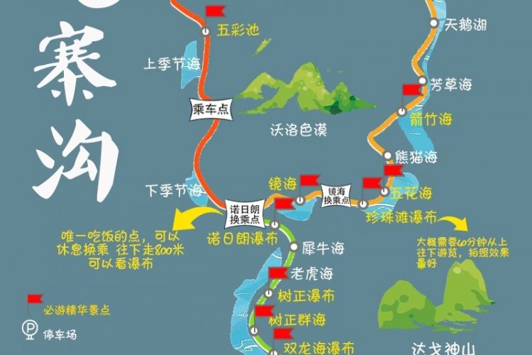 2.沟内游览无导游陪同,观光车上有相关讲解服务。