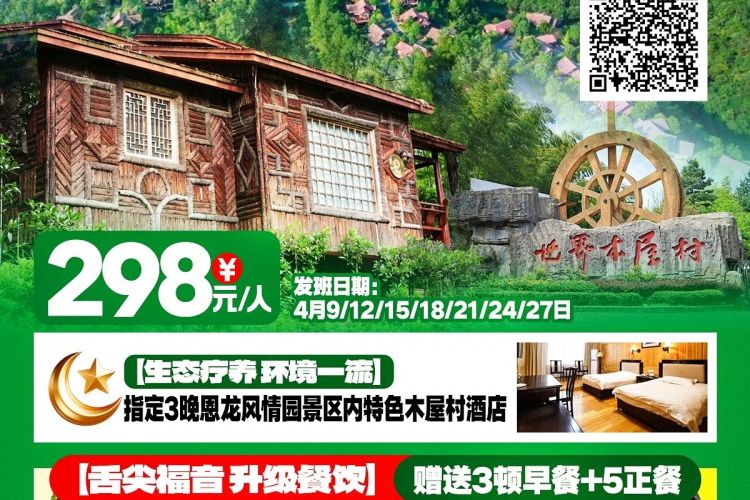 2、住宿:3晚恩龙世界木屋村,房差只补不退,房差240元/人、含空调,含洗漱用品