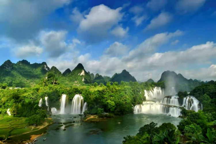早餐后,游览【德天跨国大瀑布】景区(游览时间不少于120分钟,景区接驳车35元/人已含),徒步进入景区游览亚洲第一大、世界第四大跨国瀑布,瀑布由中国的德天瀑布和越南板不少于瀑布相连构成,横跨中越两国边境,宽208米,落差70米,纵深60米,三级跌落,雄奇壮阔!