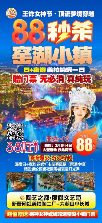 <88秒杀·窑湖小镇>陶二厂+大潮山小长城+窑湖小镇日+夜游 美拍纯玩一日