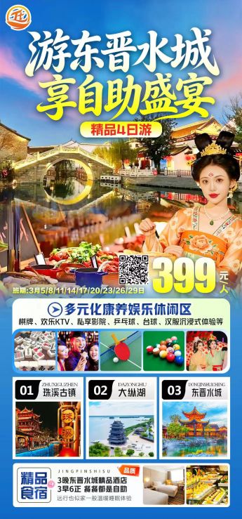 <五星盐城·康养度假>大纵湖景区/东晋水城/梅花湾景区 免费观看2大夜景、含棋牌、唱K、汉服免费体验/私享影院/乒乓球/台球 纯玩四日游
